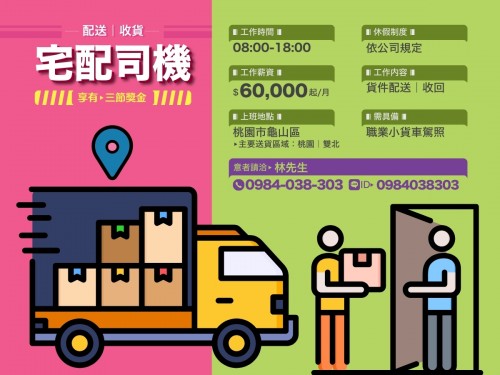推推✨誠徵✦具備職業小貨車駕照的開車好手|桃園市龜山區✦宅配✦送貨✦收貨✦司機|月薪6萬元起|客-L