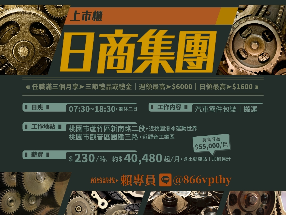 工作內容更新日期:2025-12-26 ⭕八德主機板大廠✨可日領【日$230 中$240】