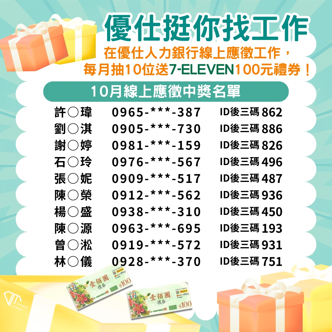 ⋱⋱ 10月線上應徵✦中獎名單✦ ⋰⋰