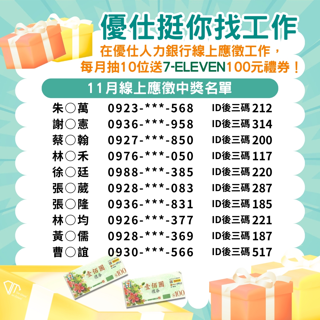 ⋱⋱ 11月線上應徵✦中獎名單✦ ⋰⋰