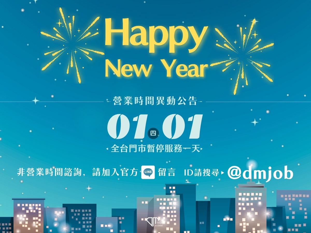 【優仕人力銀行.門市營業時間異動公告】1/1 (四) 元旦⁌ 全台門市暫停服務一天 ⁍2025-12-29