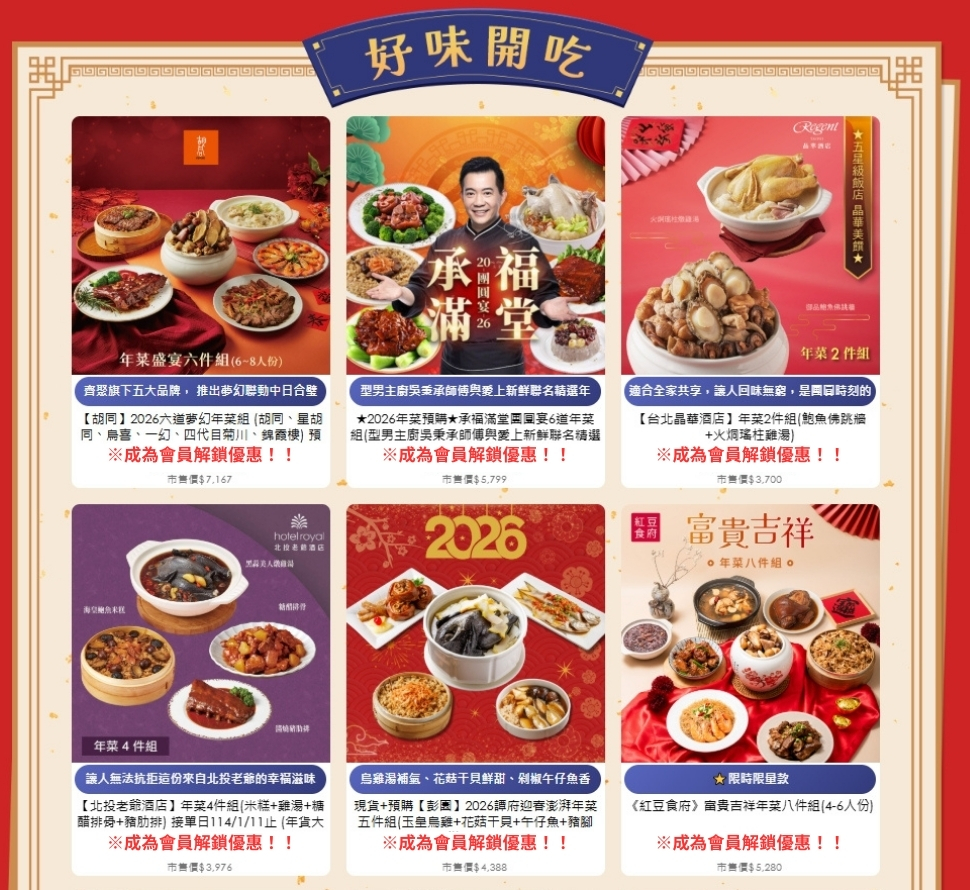 平台還貼心幫大家把各式年菜跟禮品分類,更便利好瀏覽唷!