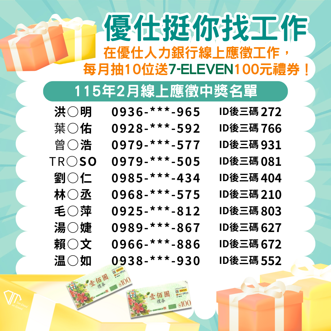 ⋱⋱ 115年2月線上應徵✦中獎名單✦ ⋰⋰